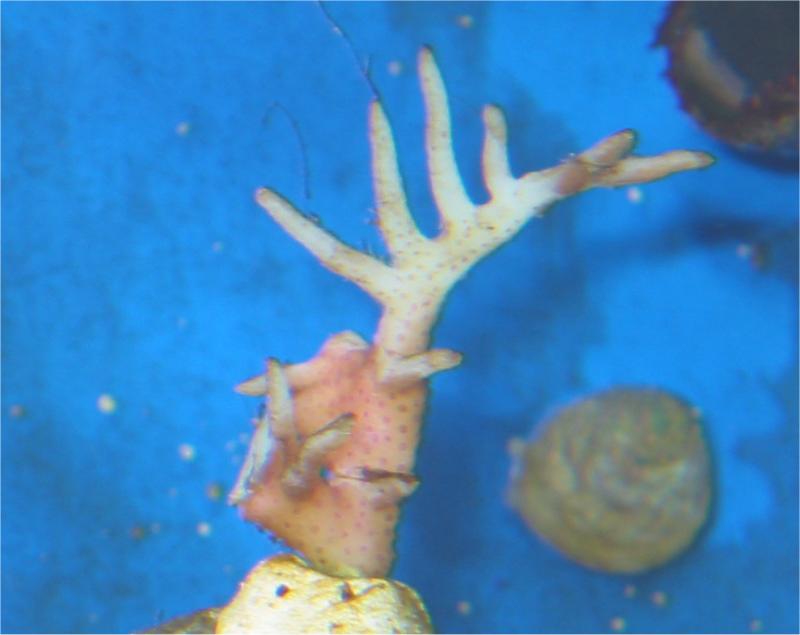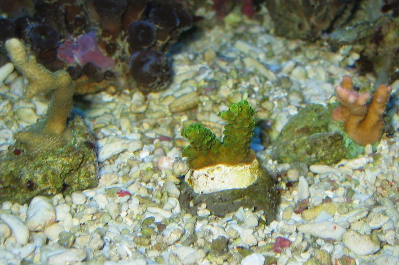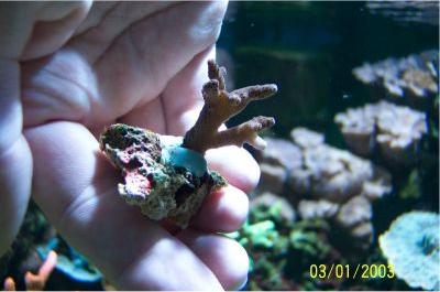 17.01.2004 2 Acropora Ableger eingesetzt. Je ca. 4cm groß