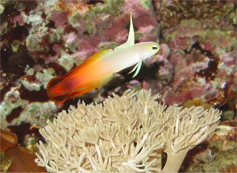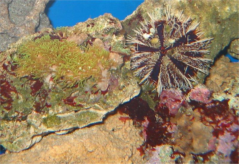 24.04.2003 Weil die Anemonenfische nachts immer an der Wasseroberfläche hingen hatte ich am 15. März eine Anemone eingesetzt. Die Fische haben sich jedoch nicht dafür interessiert. Am 30. März wurde dann in der Nacht bei dem kleineren der Anemonenfische die Schwanzflosse von einer Krabbe (denke ich) abgefressen und zwei Tage später auch bei dem Zweiten. Beide sind ein paar Tage später gestorben. Ich konnte bisher den Übeltäter nicht ausfindig machen, vielleicht war es auch eine Krankheit. Die rote Korallengrundel hatte ich am 19. März eingesetzt und Ihr geht es bisher gut. Heute habe ich noch einen Bicolor Blenni eingesetzt.