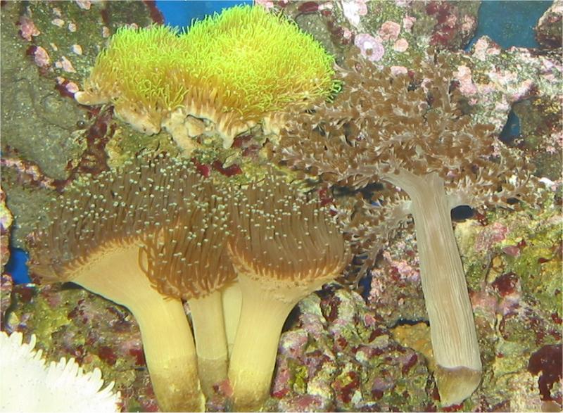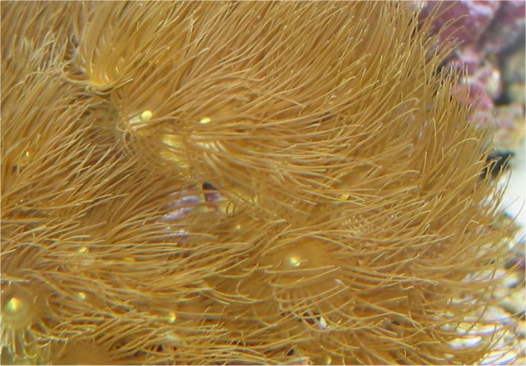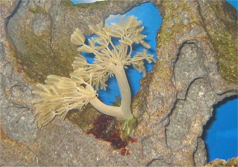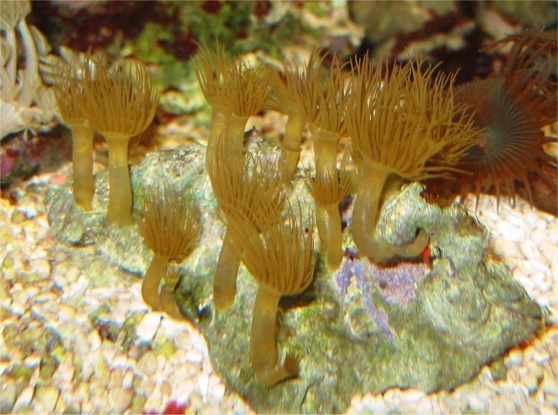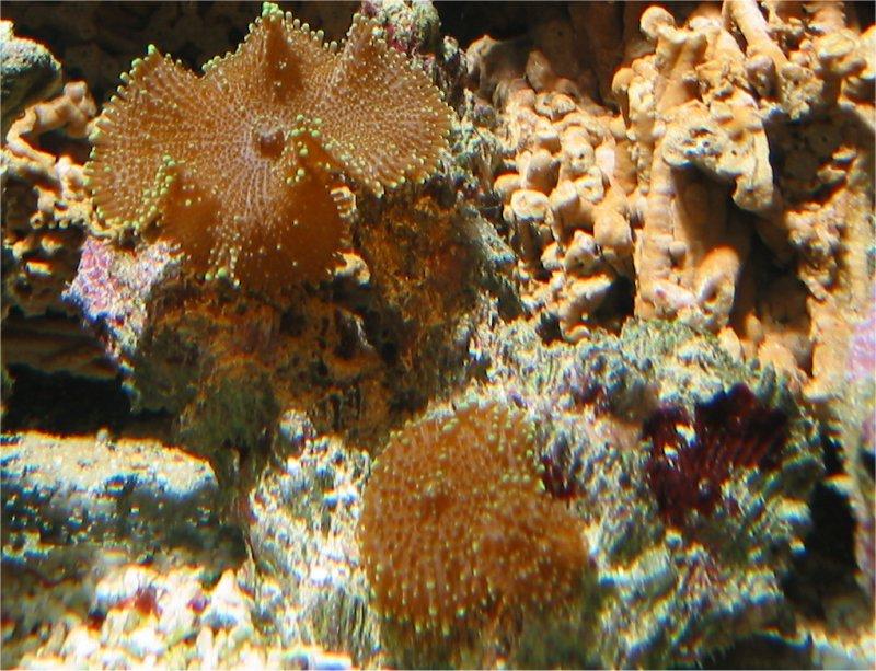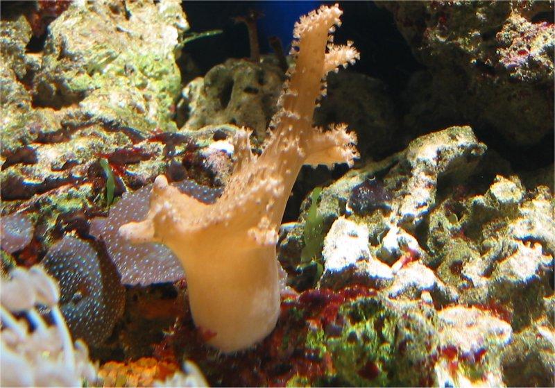 05.03.2003 Hier sind Bilder einiger Korallen, die umgezogen sind: Röhrenkoralle, Xenia Ableger, gelbe Krustenanemone, Lederkoralle, Lebender Stein und Scheibenanemonen. Durch den Umbau kann ich bisher keine negativen Veränderungen erkennen. Nitrat 1 Phosphat 0,25 Calcium 450.