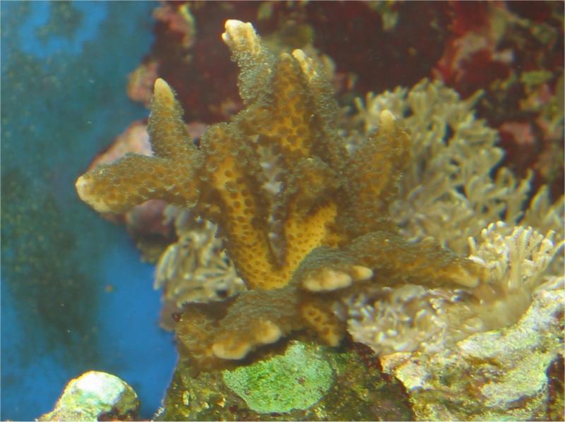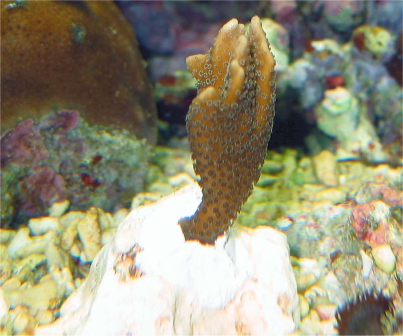 12.03.2003 Viel zu voreilig habe ich bei ebay eine Montipora Steinkoralle "gekauft". Nitrat habe ich zwar nur 0,1 im Becken aber von Spurenelementen usw. habe ich bisher keine Ahnung. Nur Calcium und Stronzium der Firma Rowa gebe ich täglich hinzu. Trotzdem bin ich total begeistert, weil die Koralle sofort die Polypen geöffnet hat und toll aussieht. Ob sie natürlich in meinem Becken durchhält ist fraglich.