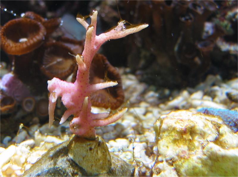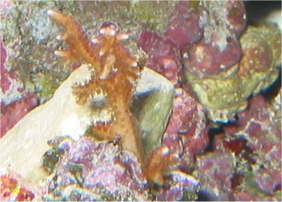 1.02.2004 Ich habe einen ca. 4cm Entenfuß Seestern entdeckt, der meiner Pavona die halbe Fußscheibe aufgefressen hat. Tagsüber war er nicht zu sehen aber sobald das Licht aus war, hat er an der gleichen Stelle weiter gefressen. Obwohl Seesterne kein Gehirn haben. hat er sich die Position gemerkt. Ich habe ihn entfernt in das 12l Becken. Außerdem habe ich bestimmt 80 kleine graue Seesterne entfernt. Diese fressen zumindest Porites Gewebe.