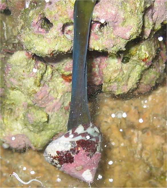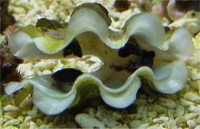27.02.2004 In allen Büchern hatte ich gelesen, Tridacna maxima Muscheln seien leicht zu pflegen, wenn genügend Licht vorhanden ist. Am 27. hatte ich eine schöne blaue gefunden, die auch schon auf einem Stein befestigt war. Ich habe sie mit Stein gekauft. 3 Tage lang sah sie sehr gut aus. 3 Tage später allerdings war schon nichts mehr übrig. Die Ursache konnte ich allerdings nicht ermitteln. Auch das Aufstellen einer Falle hat nichts gebracht. War vielleicht einfach nur Pech. - Das arme Tier...