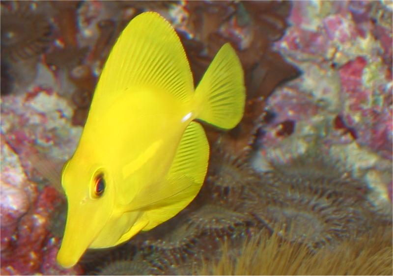28.07.2003 Als natürliche Maßnahme habe ich noch 10 Trochus Turboschnecken und einen gelben Zebrasoma eingesetzt. Endlich hat der Palettendoc jemanden zum herumschwimmen.