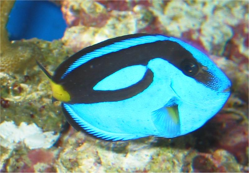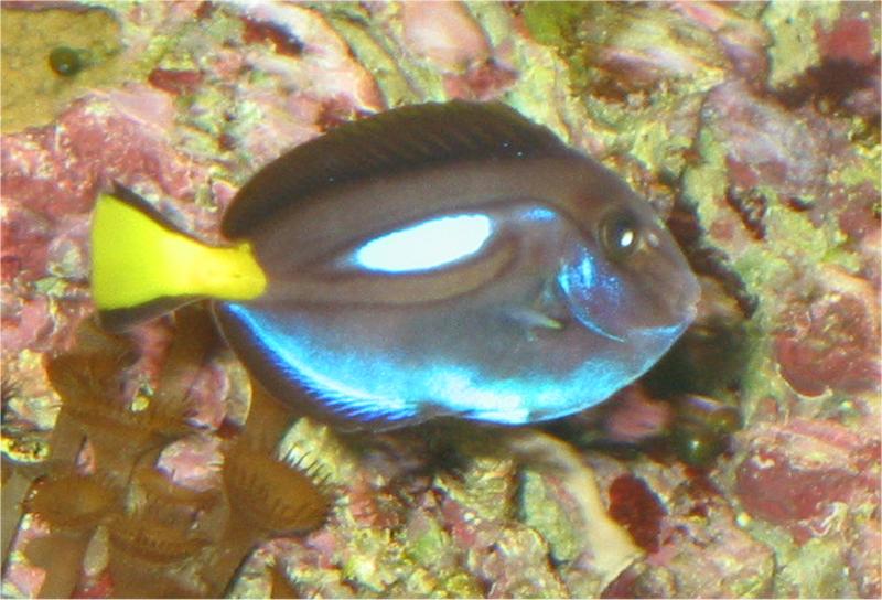 22.08.2003 Nach dem die Algen einigermaßen überwunden sind kommen jetzt die Pünktchen, die ich mir wohl mit den Anemonenfischen eingeschleppt habe. Am Futter denke ich liegt es nicht (Frost Marine mix und Artemia, Flocken und Löwenzahn). Ich hatte mich so gefreut, dass der Doc endlich nicht mehr so schüchtern ist und auch die Farbe mittlerweile normal sind (siehe Bild oben). Der Paletten Doc, der gelbe Zebrasoma und die rote Korallengrundel haben kleine Pünktchen am Körper und in den Flossen. Vitamintropfen werden da wohl nicht mehr helfen. Na ja, mein Händler hat mir darauf hin wieder den Diatom Filter geliehen und mir empfohlen 10 Tropfen Tropic Marin Jod je 100 Liter Abends zuzugeben.