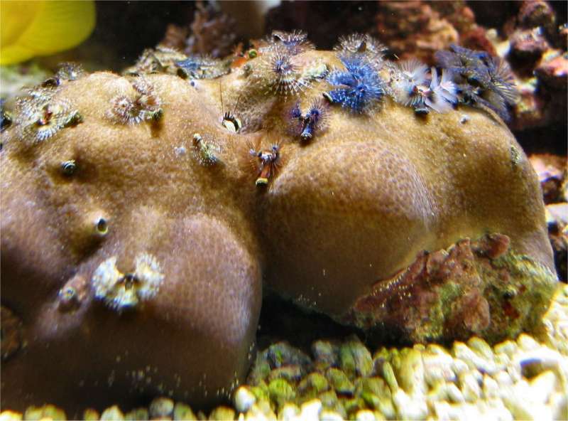 28.05.2003 Der Palettendoc ist gesund. Leider ist von den Feuerschläfergrundeln seit einigen Tagen nur noch eine zu sehen. Dafür ist der komische Wurm mal wieder aufgetaucht. Ich habe ihn nicht entfernt, weil ich nicht glaube, dass er Schaden anrichtet. Außerdem habe ich 2 Korallenableger (je 5 Euro) eingesetzt. Mittlerweile gebe ich auch Spurenelemente der Firma JBL hinzu, weil die Xenias im Wachstum nachgelassen haben. Auf der Oberfläche habe ich eine grüne Schleimschicht, die ich alle 3 Tage mit einem Styropor Streifen abziehe.